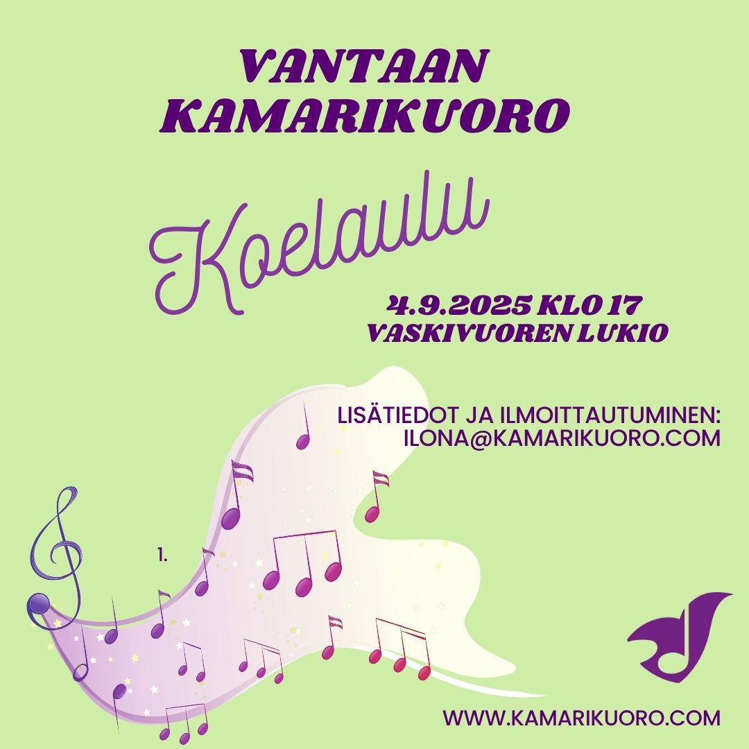 Tervetuloa konsertteihimme, tai tilaamaan sopivan kokoonpanon tapahtumaanne, tai mukaan kamarikuorolaiseksi!